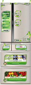 Giúp làm lạnh hiệu quả và tiết kiệm điện: cảm biến tần suất đóng mở cửa tủ [1], ánh sáng mặt trời [2], nhiệt độ bên trong tủ [3], nhiệt độ bên ngoài tủ [4].